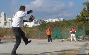 私のYoutubeにアップしていた下半身の使い方、上半身の使い方の欠陥をなんとか克服、改善しようとこの冬取り組んできたことが、実際ボールを持って投げるときに生きるのかどうかです。この3カ月半一人でやってきた中で分かったこともありました。トレーニングの中ではそれが出来るようになってきていますが、まだまだ未完成ですし実際ボールを投げた時にその動きが出来るか、飛んで投げた時にその動きがボールの速さや強さになってこなければ意味がありません。